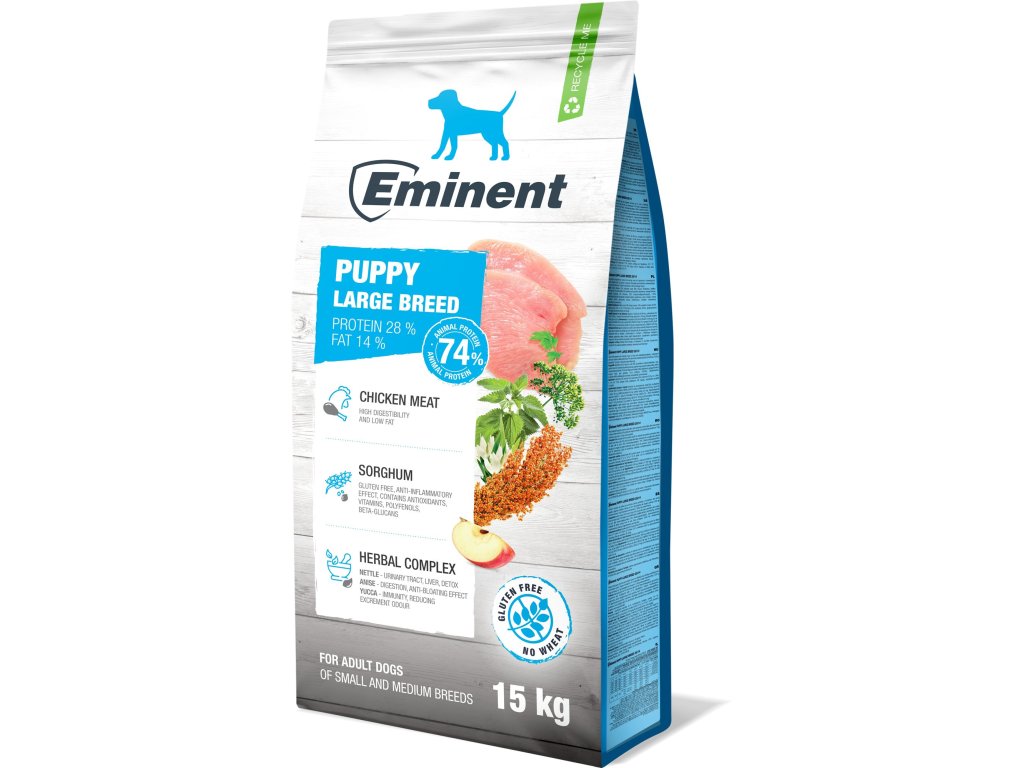 Kompletní bezlepkové krmivo EMINENT PUPPY LARGE BREED 28/14 je speciálně navrženo pro štěňata, březí a kojící feny velkých a obřích plemen tak, aby jim poskytlo veškeré potřebné živiny pro jejich plnohodnotný růst a vývoj.