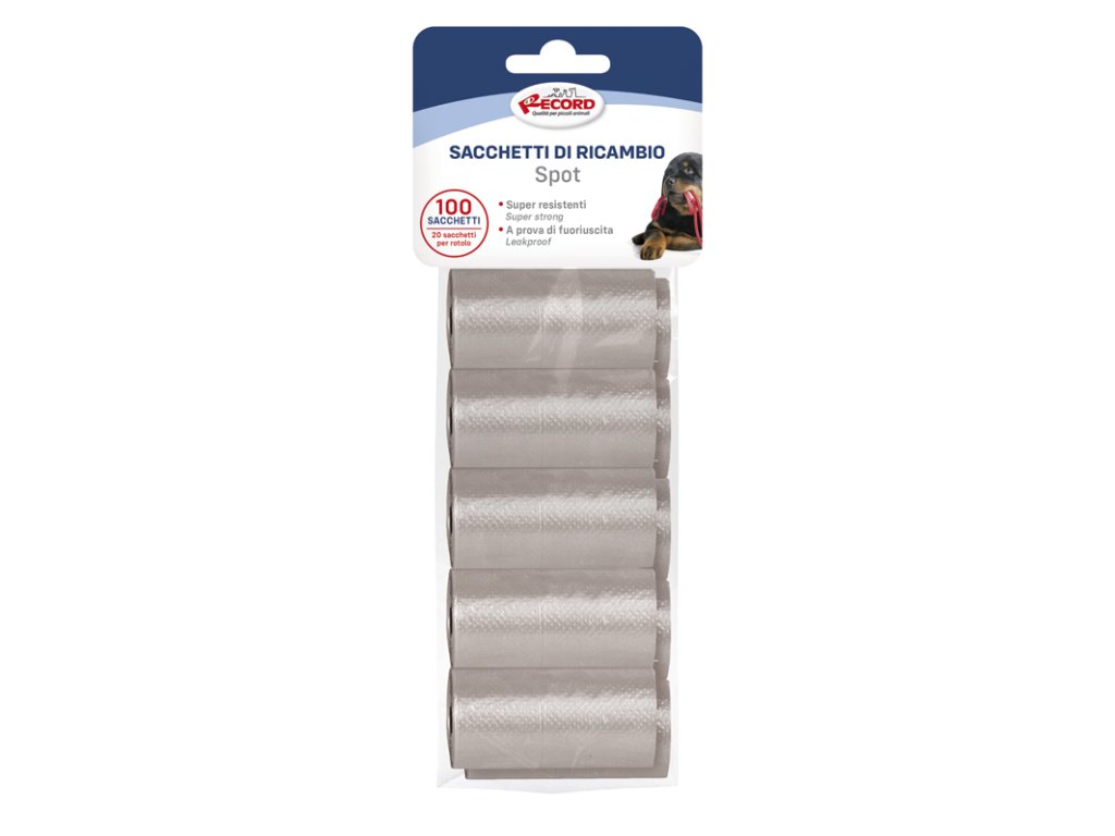 Balení 10 kotoučů pevných sáčků na psí exkrementy, které se vejdou do většiny dávkovačů a držáků na sáčky. Každý kotouč obsahuje 20 kapes pro všechna plemena. 200 sáčků. Různé barvy balení (modrá, šedá, oranžová).
