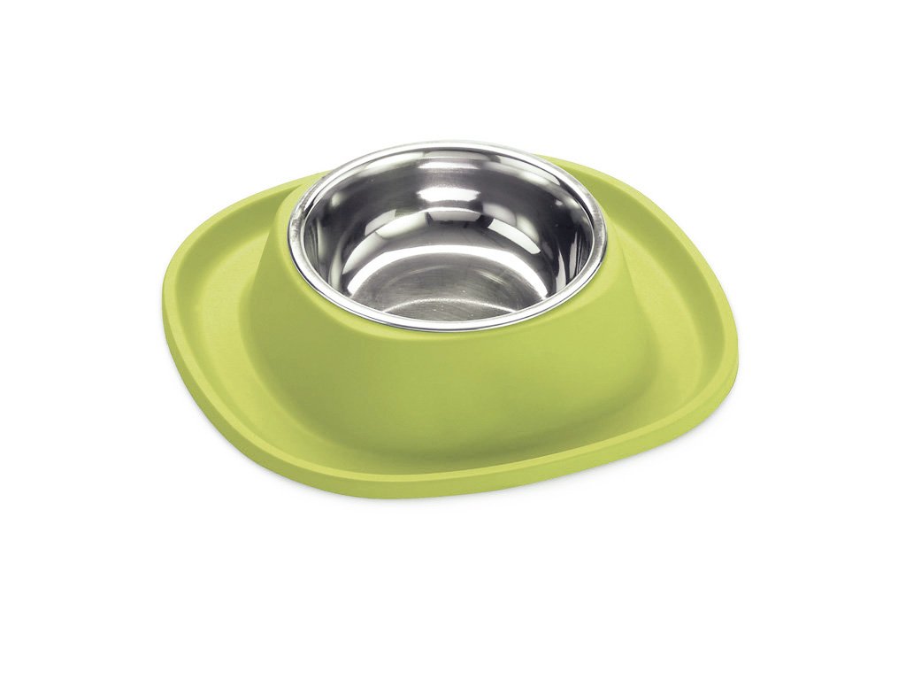 Misky pro psa s měkkou protiskluzovou základnou. Vyjímatelná nerezová miska se může používat samostatně. Protiskluzová základna se může používat jako samostatná miska. Široký okraj na jedné straně brání zašpinění okolí misky a slouží i jako podložka a zároveň jeho speciální vyvýšený tvar okraje a materiál je ideální ochrana proti mravencům. Misky se dají ukládat na sebe - jsou stohovatelné i při více psů tedy nezabírají mnoho místa. Nerezová vrchní miska poslouží i jako samostatná miska.