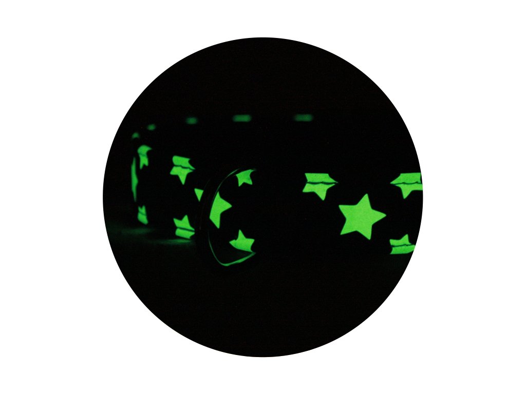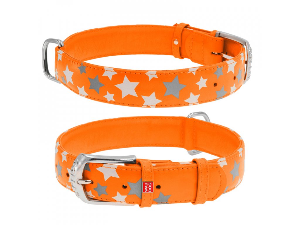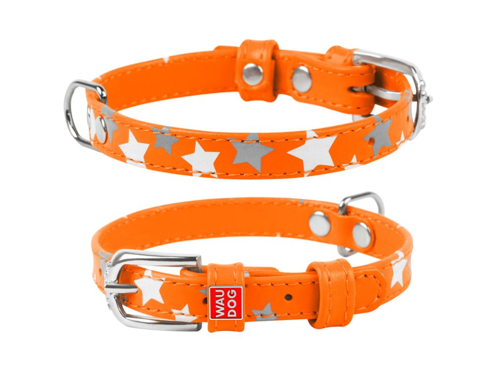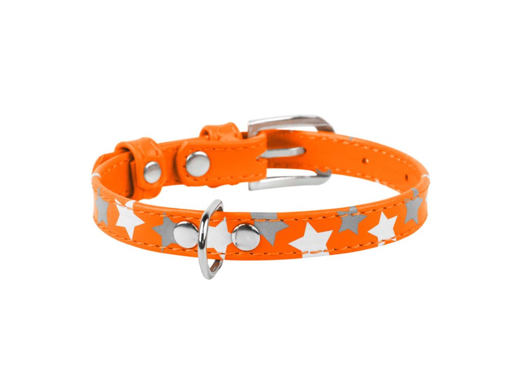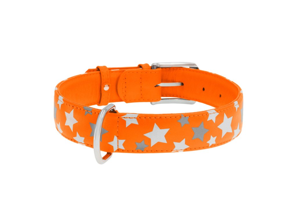 Plochý kožený obojek s hvězdičkami oranžový svítící