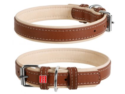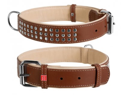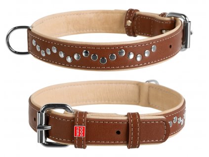 Ručně šitý a ručně vyráběný, velmi jemný a měkký, vysoce kvalitní dvouvrstvý kožený obojek s kovovými ostny, s lesklým zapínáním a pevným kroužkem. Přírodní dvouvrstvá velmi jemná a přitom odolná kůže nejenže hezky vypadá, ale také poskytuje dlouhotrvající použití. Tyto obojky jsou součástí naší Soft kolekce a jsou vhodné pro všechny psy ale zejména pro psy s citlivou kůží nebo alergické na nylon. Tento atraktivní obojek je vyráběn v různých velikostech od štěňat až po velká plemena. Tento kožený obojek je výborně promyšlený v každém detailu. Kroužek na zapínání vodítka je na vrchní straně, čili pěkně vidět celou dekoraci obojku. Obojek je hnědo - béžové barvy.