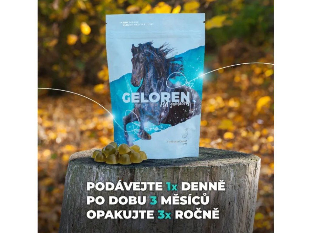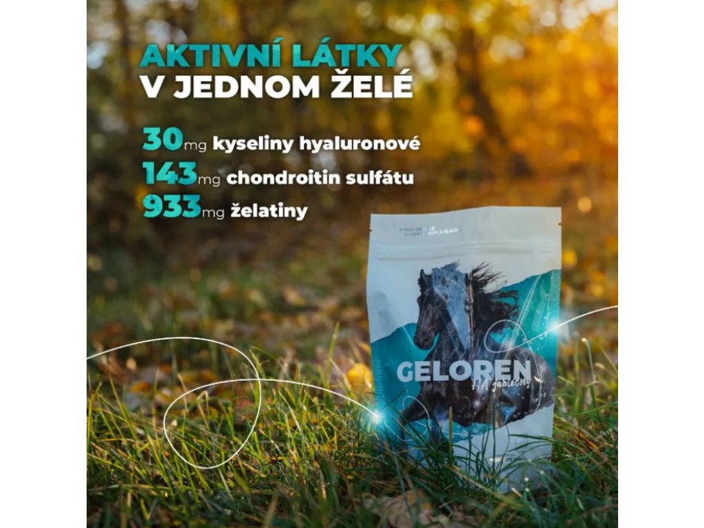 Geloren HA je vhodným doplňkem výživy koní při většině typů kloubních problémů, ale také může přispívat k prodloužení aktivního života nejen u sportovních koní. Geloren HA má podpůrný vliv na klouby - napomáhá při zvýšené zátěži, nadváze, ve stáří i při problémech s pohybovým aparátem.