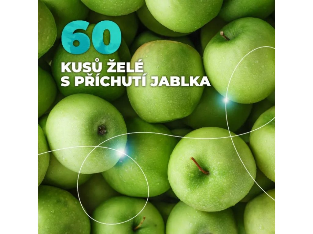 SLOŽENÍ: Voda, cukr, glukózový sirup, želatina vepřová (12,5 %), chondroitin sulfát (1,9 %), sorban draselný, glycerin, kyselina hyaluronová (0,4 %), barvivo (oxid železa), zchutňující látka (jablečné aroma), kyselina citrónová, povrchová úprava želé proti slepování (kokosový olej, řepkový olej a karnaubský vosk).